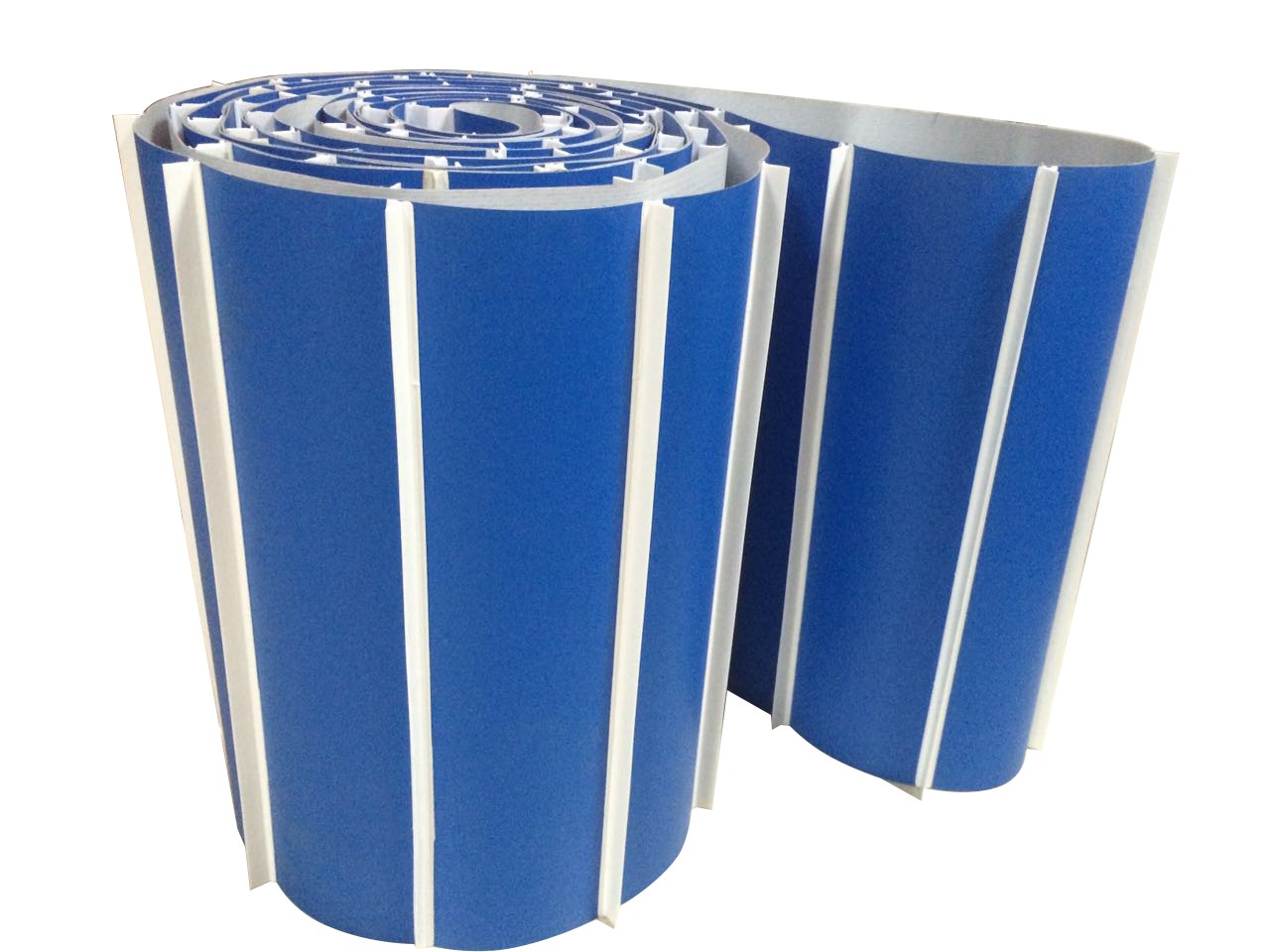 裙邊輸送帶分為:有裙邊無(wú)隔板輸送帶和有裙邊有隔板輸送帶兩種。能使各種散裝物料以0-90度作任意傾角連續(xù)輸送、具有輸送傾角大、使用范圍廣、占地面積小。無(wú)轉(zhuǎn)運(yùn)點(diǎn)、減少土建投資、維護(hù)費(fèi)用低、輸送量大等特點(diǎn),解決了普通輸送帶或花紋輸送帶所不能達(dá)到的輸送角度。波狀擋邊輸送帶可根據(jù)要求設(shè)計(jì)成一套完整輸送系統(tǒng),避免了間斷輸送和復(fù)雜輸送的提升系統(tǒng)。